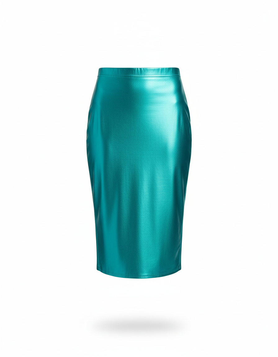 Façonnée dans un simili cuir de haute qualité, cette jupe crayon épouse gracieusement la silhouette, offrant un tombé impeccable et un confort surprenant. Le choix du turquoise brillant n'est pas anodin : il évoque la confiance et l'audace, loin des conventions. Facilement stylisable, que ce soit avec des baskets blanches pour un look urbain chic ou des talons pour une soirée élégante, elle est la promesse d'une polyvalence sans compromis. Osez la différence, choisissez l'exception.