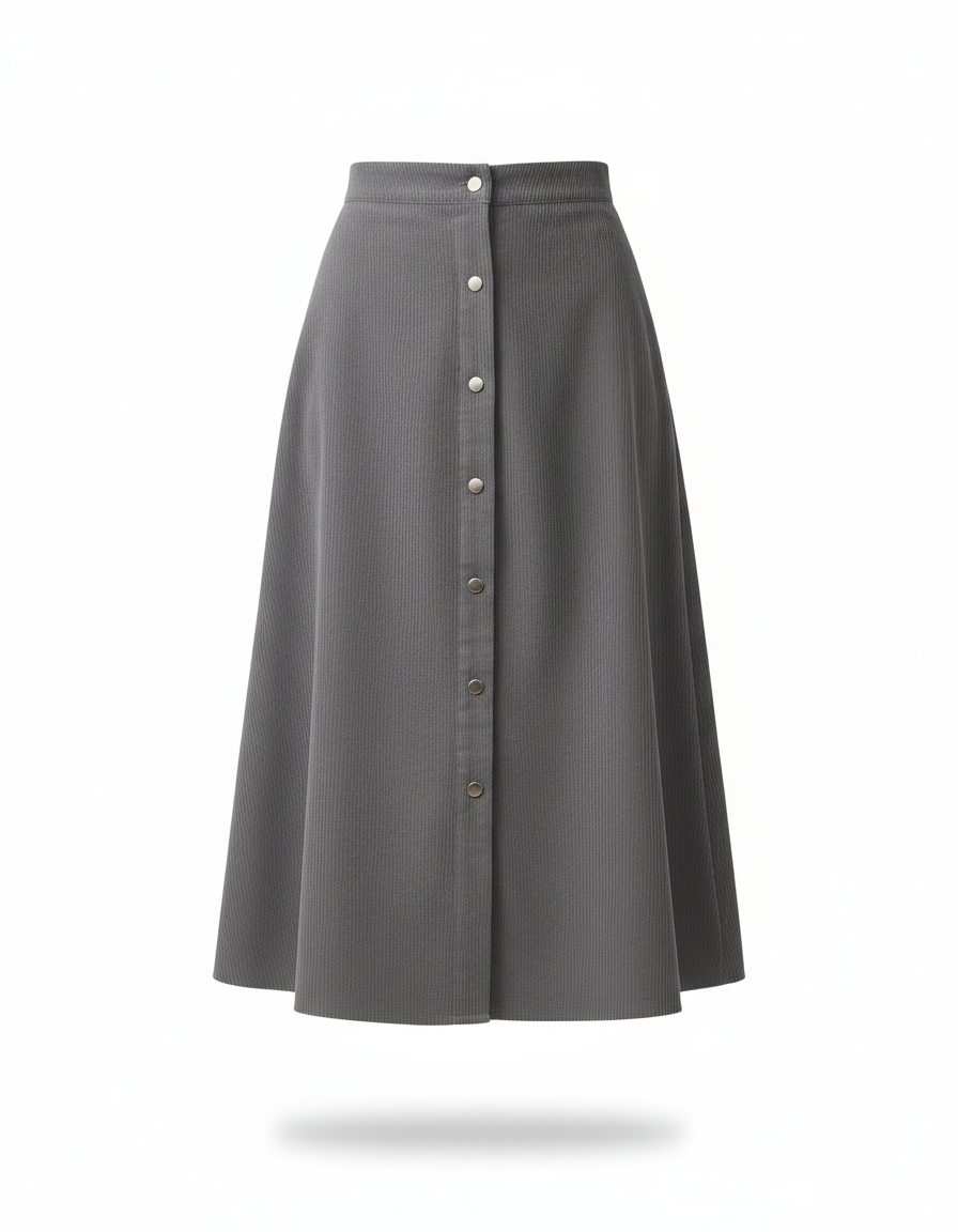 Ce qui distingue notre Jupe Midi Velours Cotelé, c'est son équilibre parfait entre texture et coupe. Le velours côtelé de haute qualité, dans une teinte gris intemporelle, apporte une profondeur visuelle et un toucher luxueux, loin des conventions du casual. Sa coupe trapèze flatte toutes les morphologies, tandis que la rangée de boutons devant ajoute une touche de caractère subtile et moderne. C'est la jupe qui vous permet d'exprimer votre personnalité avec assurance, en conjuguant un confort absolu à une esthétique haut de gamme, sans jamais compromettre le style.