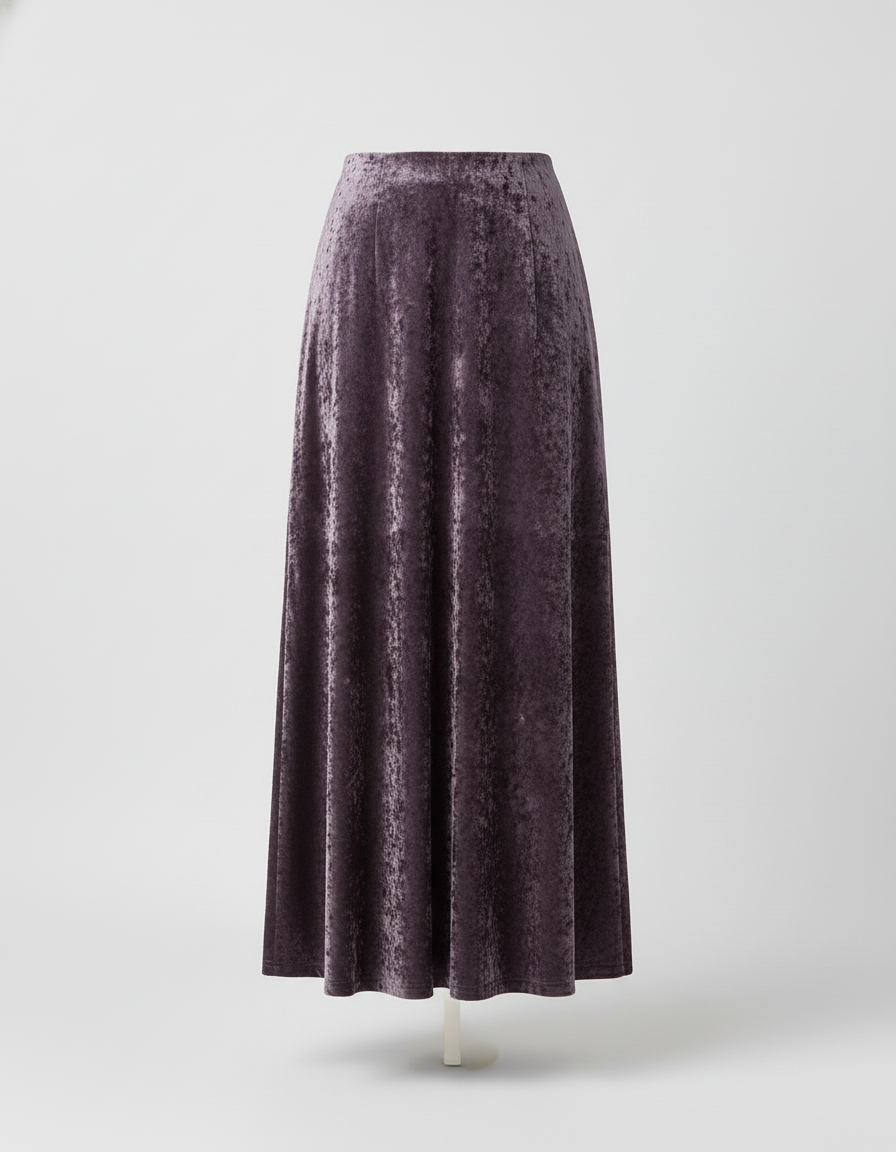 Jupe Midi Velours Violet Élégante : L'Éclat Discret de Votre Garde-Robe