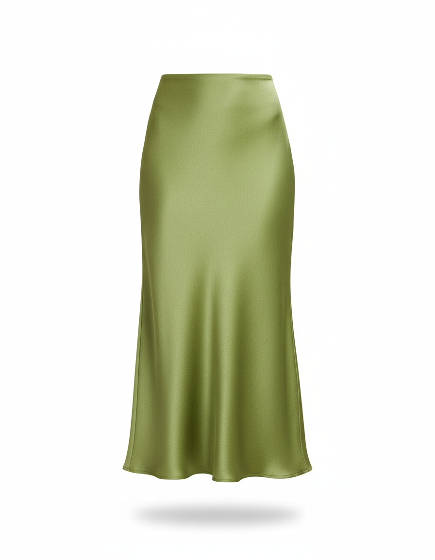 Élevez votre style avec cette jupe midi en satin vert, parfaite pour toutes les occasions.