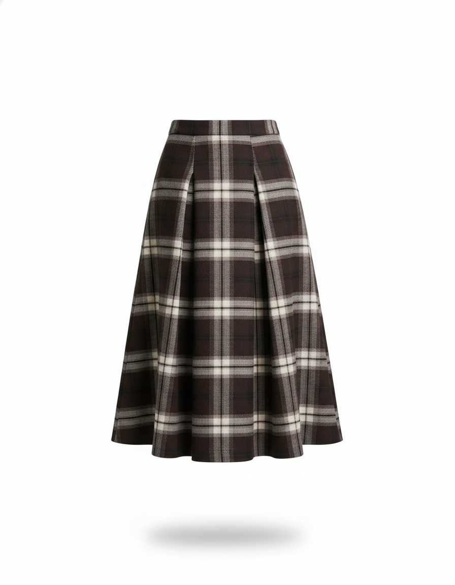 Ce qui distingue notre Jupe Tartan Midi, c'est son motif écossais classique revisité dans des tons marron profonds et des lignes crème, offrant une polyvalence inégalée. Ses plis impeccables créent un volume élégant sans alourdir, tandis que la qualité supérieure de la laine assure une tenue irréprochable et une durabilité exceptionnelle. Associez-la à des bottines pour un look décontracté-chic ou à des talons pour une touche plus formelle. Un investissement dans le style intemporel, cette jupe est la promesse d'une élégance sans effort, saison après saison, se démarquant par son alliance parfaite entre tradition et modernité.
